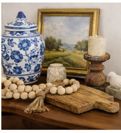 Layered navy and gold tones. Your home should tell your story - not in a trendy way, but in a way that feels authentic and lived in. And when life calls for a move, I'm also a licensed South Carolina real estate agent, ready to guide you through buying or selling with the same thoughtful, design-centered approach. So whether we're refreshing a room, restoring architectural character, curating handcrafted decor, or preparing your home for its next season… Let's create something that truly feels like home. ~ Laura